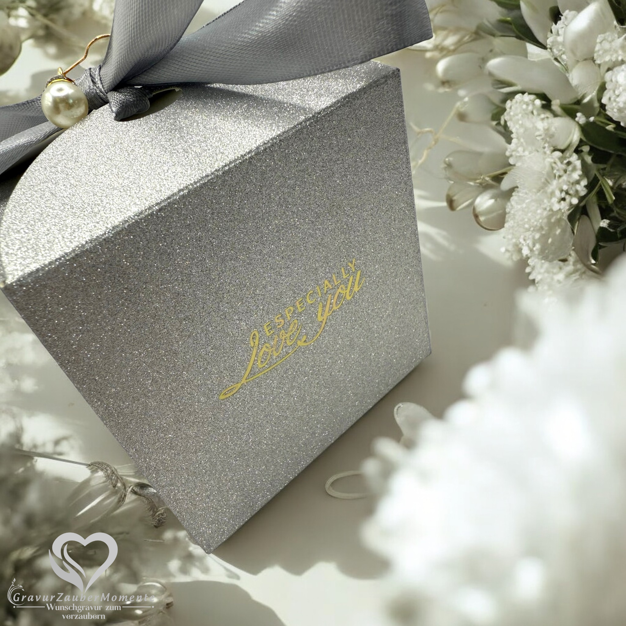 Diese wunderschöne Papierbox mit edler Schleife ist ein stilvolles und liebevolles Geschenk, das jedem besonderen Anlass einen Hauch von Eleganz verleiht. Mit ihrem feinen Schimmer, der zarten Schleife und der hochwertigen Veredelung wirkt sie besonders hochwertig und festlich – ideal für Hochzeiten, Jubiläen, Taufen, Geburtstage oder romantische Anlässe.