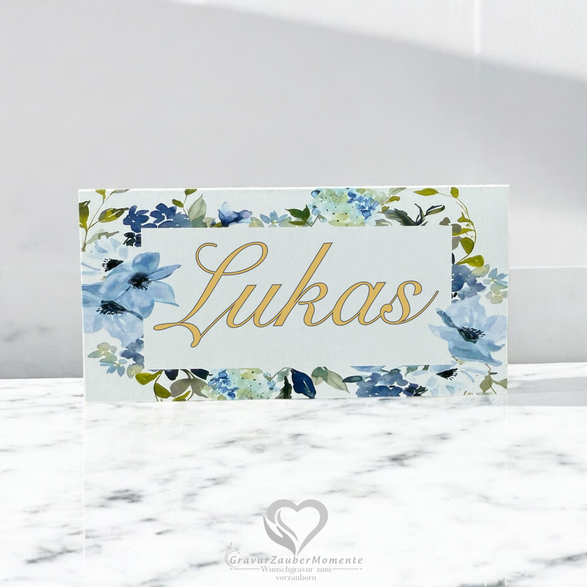 Exklusive Platzkarte „Ocean Bloom“ – Individuell graviert für jeden Gast