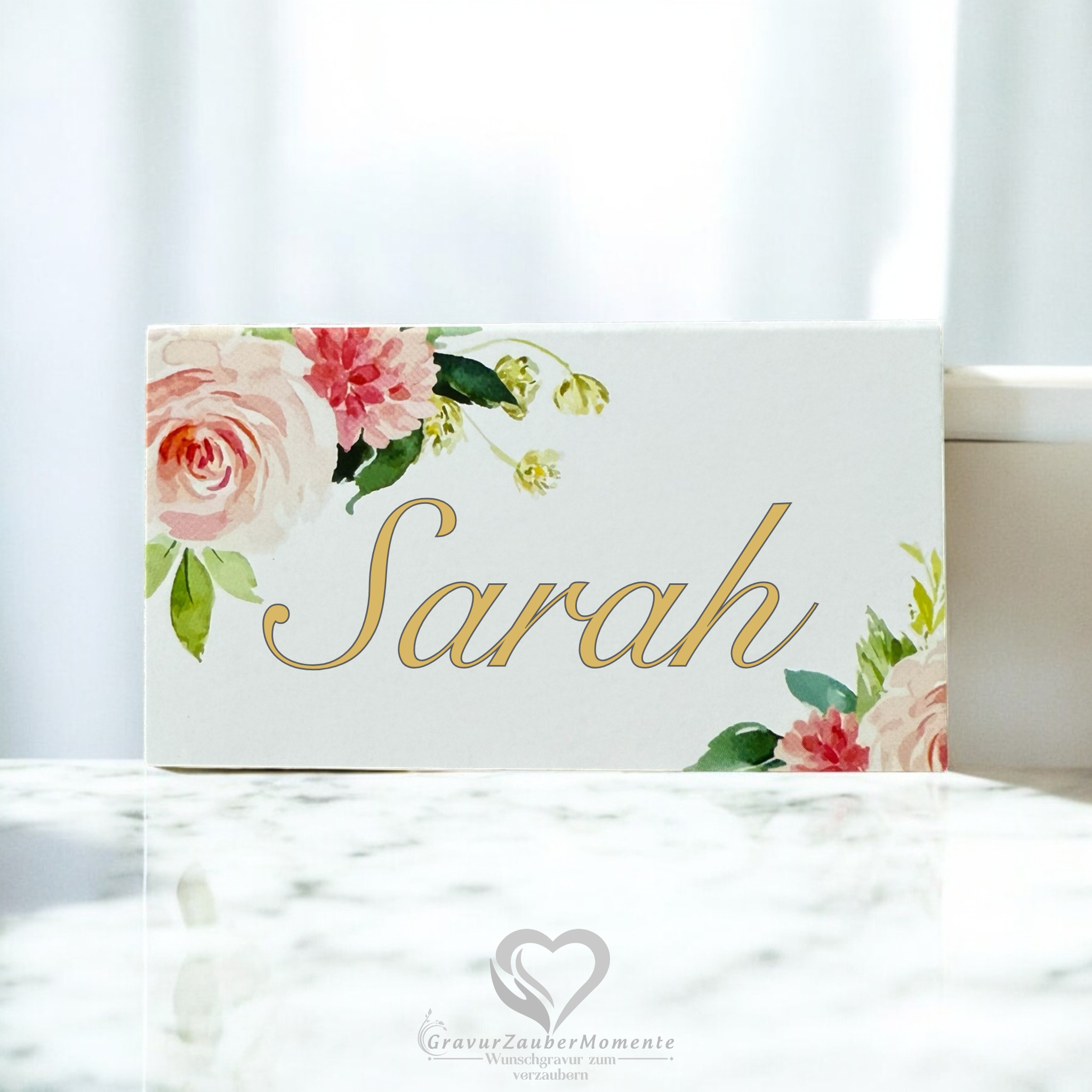 Exklusive Platzkarte „Rose Dreams“ – Individuell graviert für jeden Gast