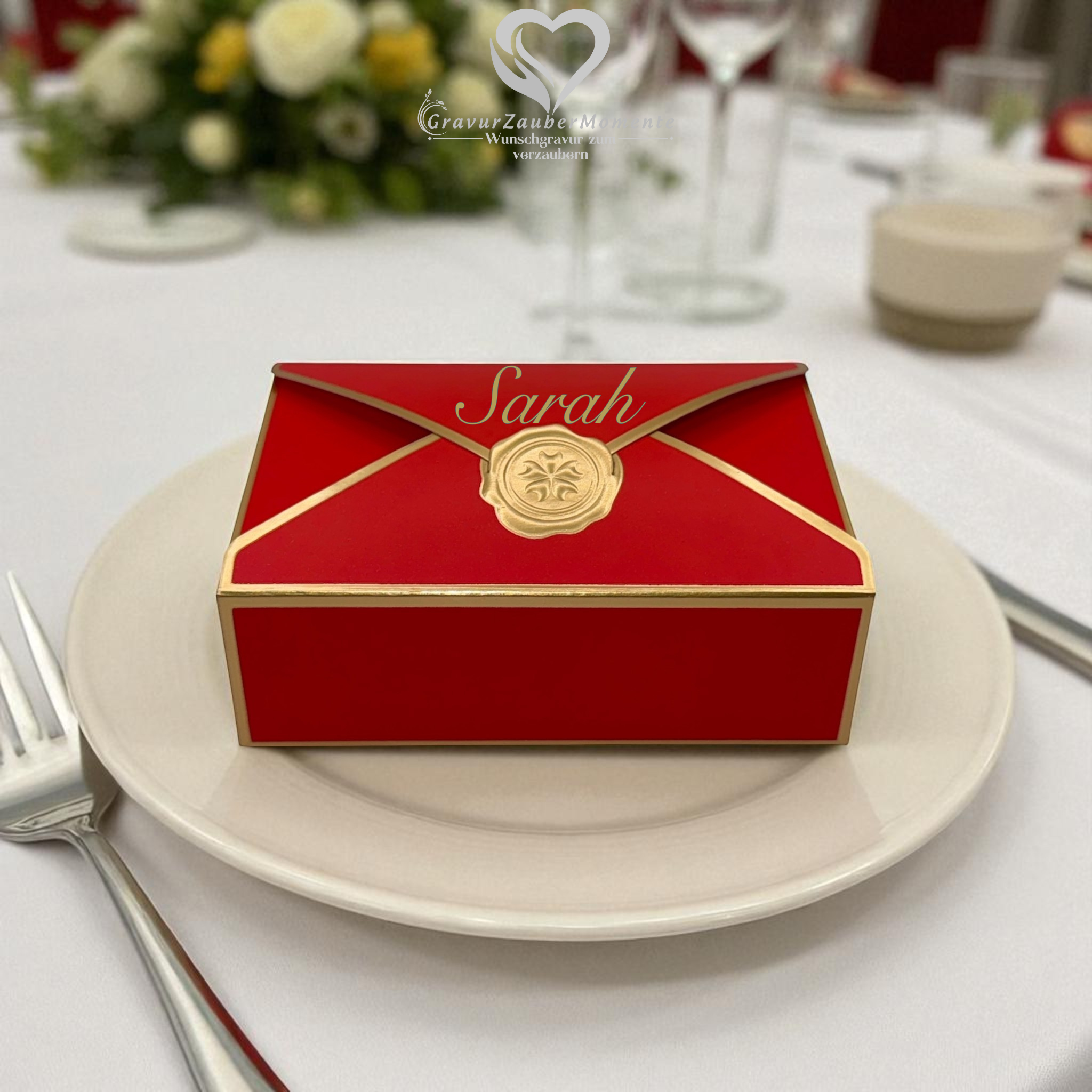 Geschenkbox Rot „Royal Elegance“ – Individuell graviert für jeden Gast