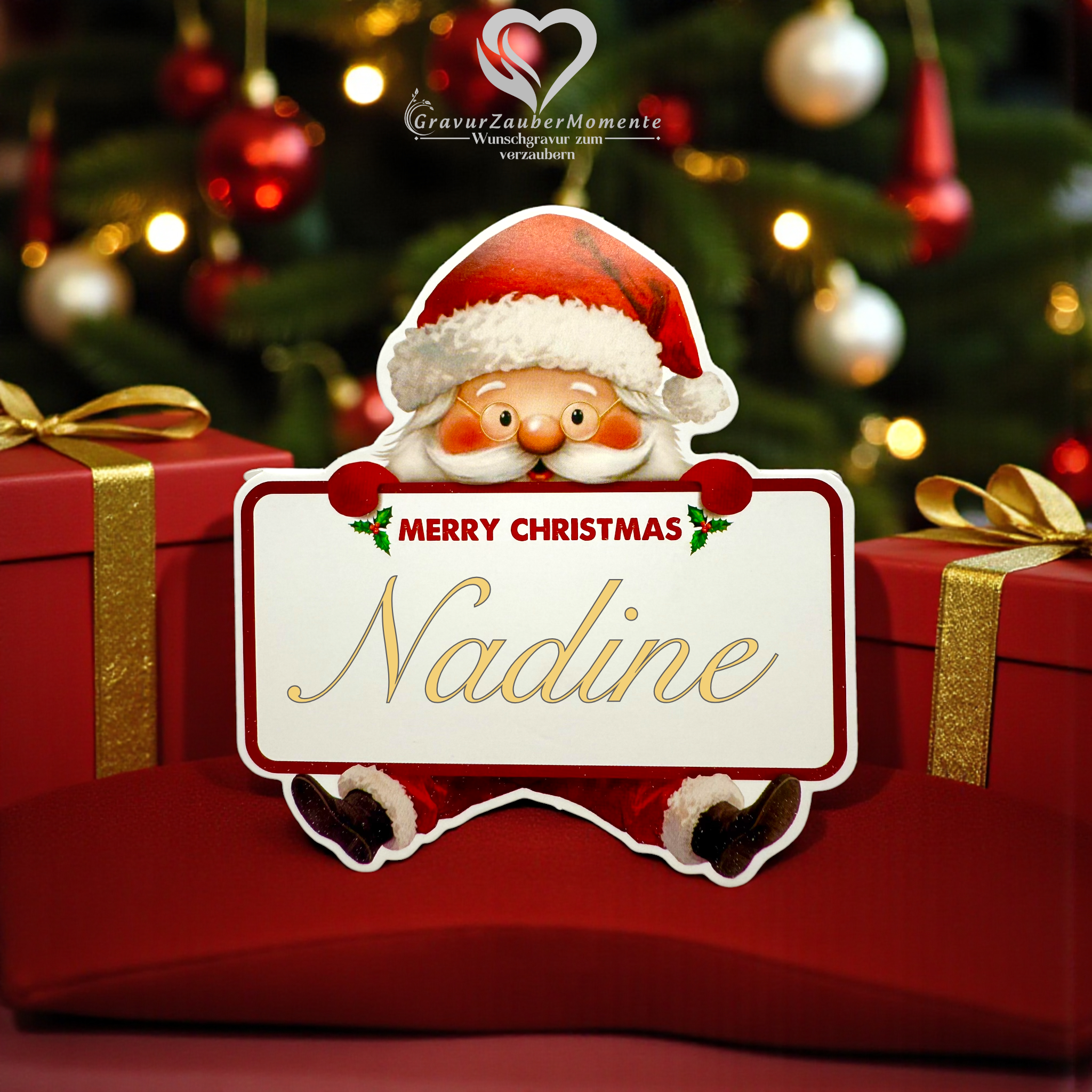 Produktinformationen "Personalisierte Weihnachtstischkarte graviert – mit Name & süßem Santa-Design"