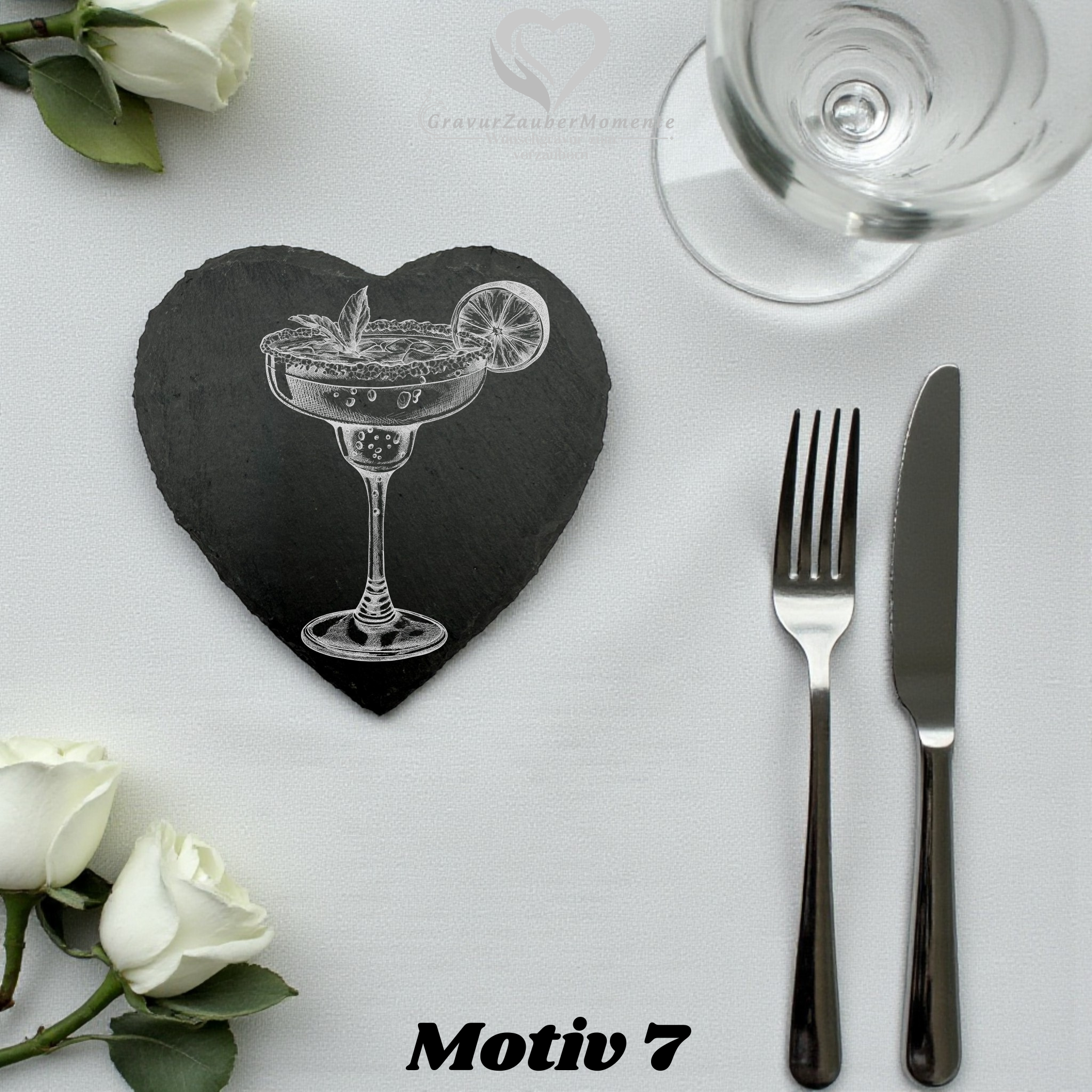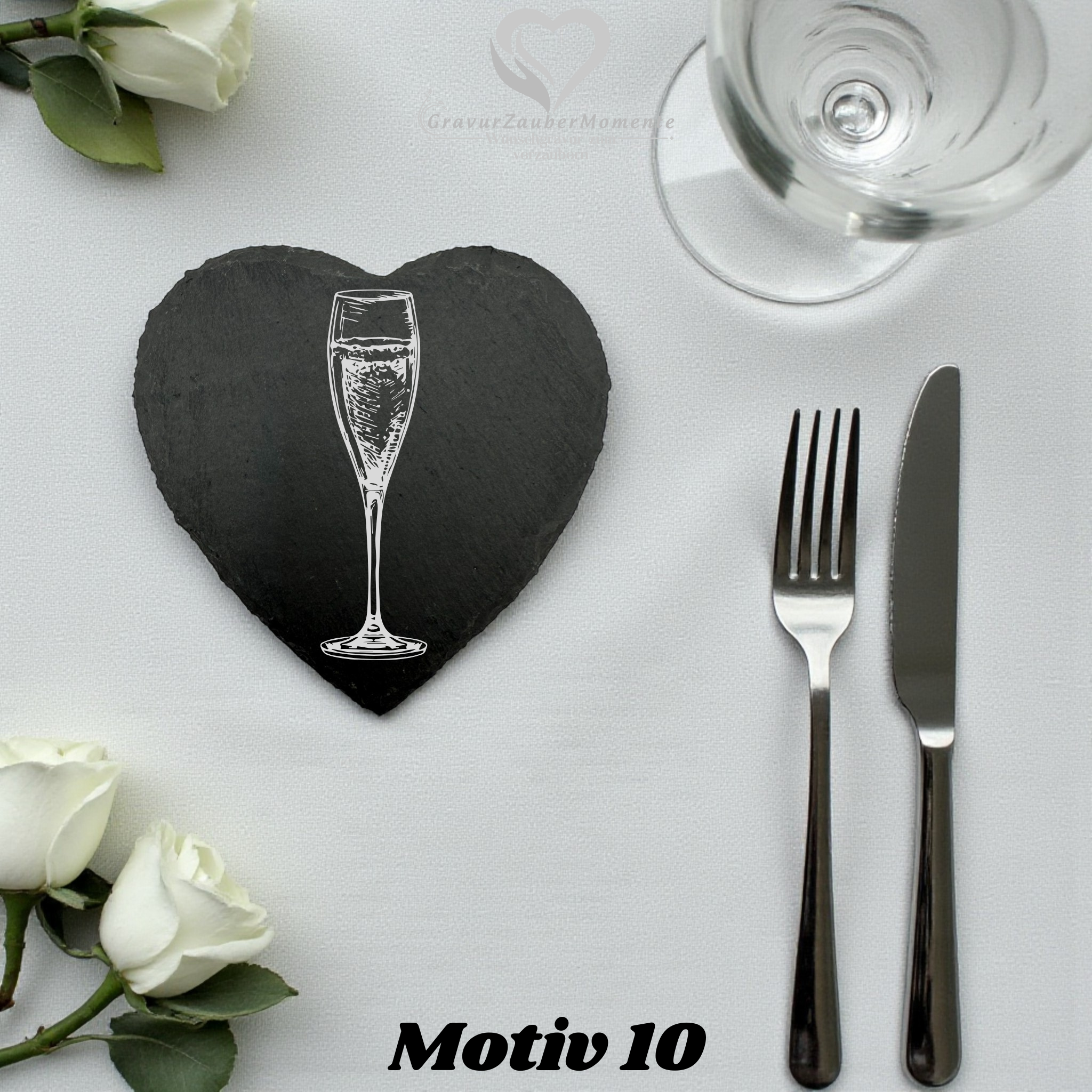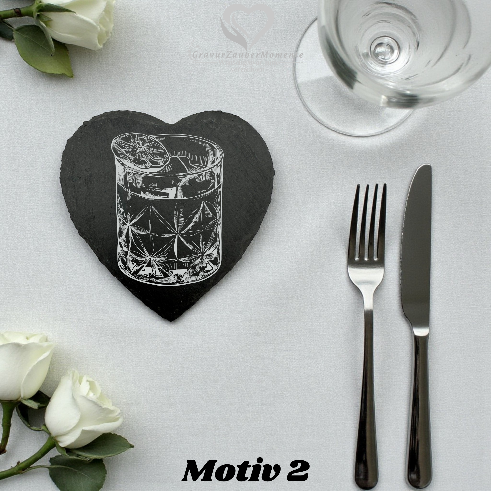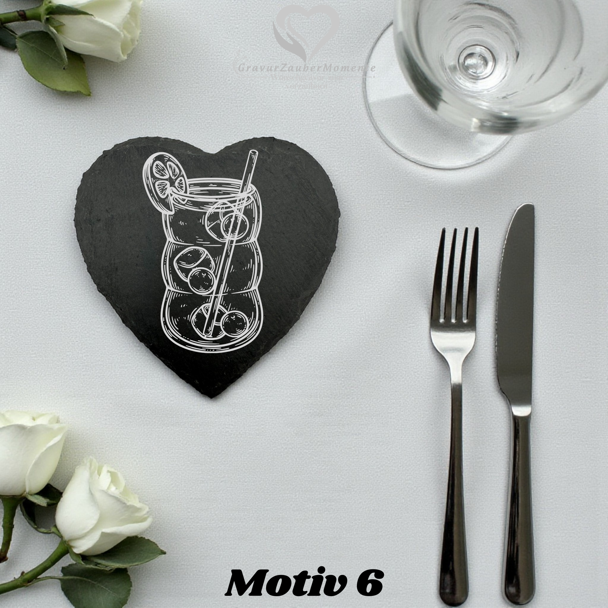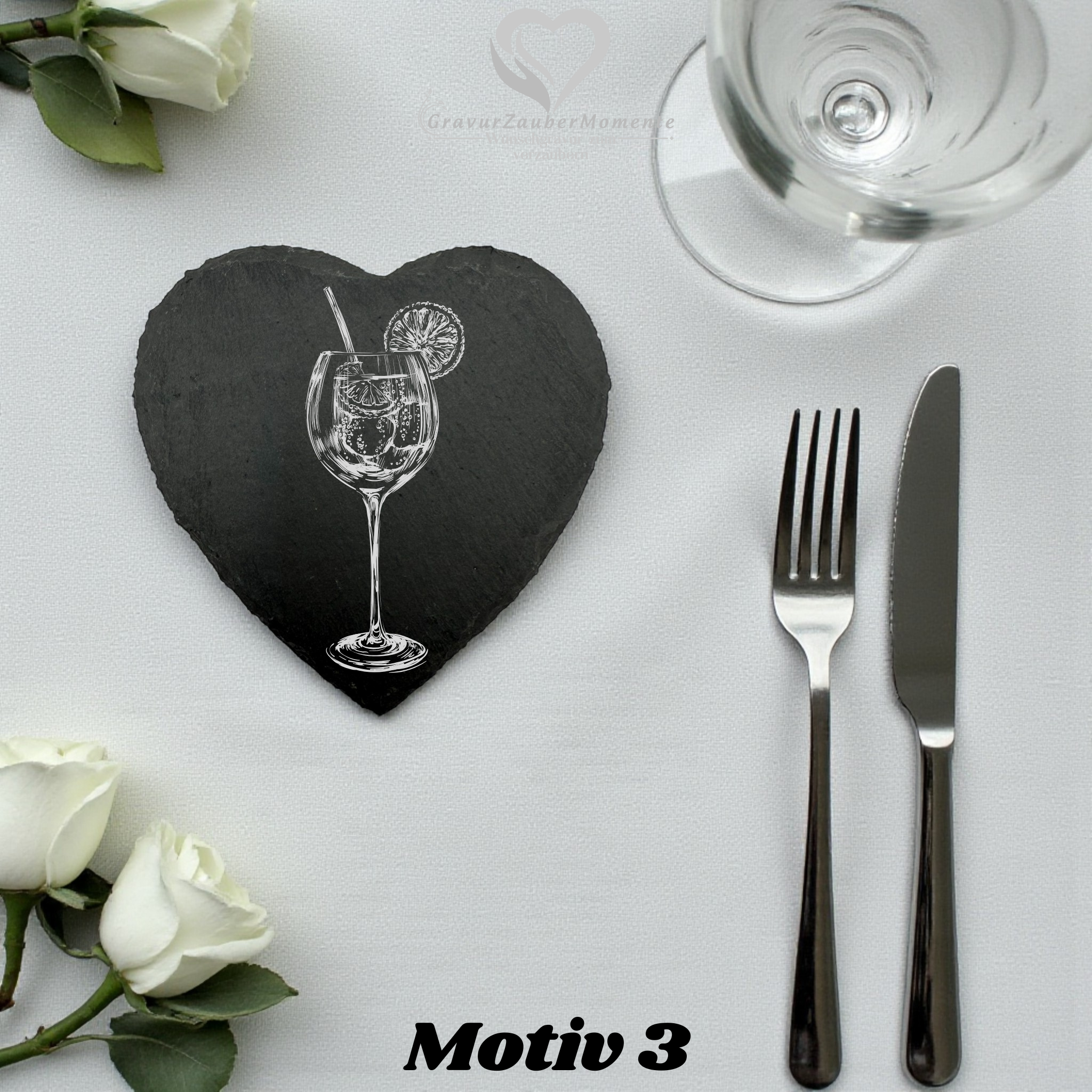 Schiefer-Untersetzer mit Lasergravur – einzigartige Motive (Herz)