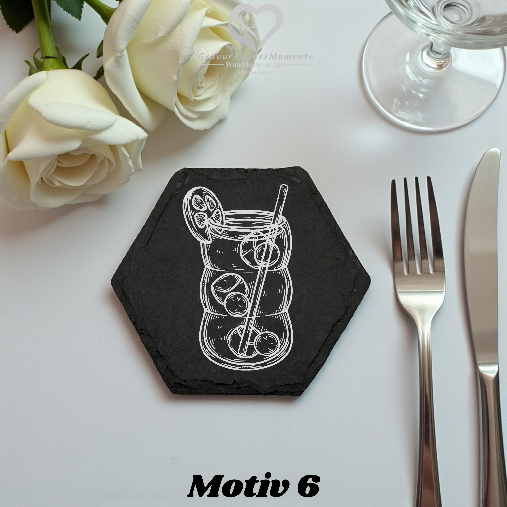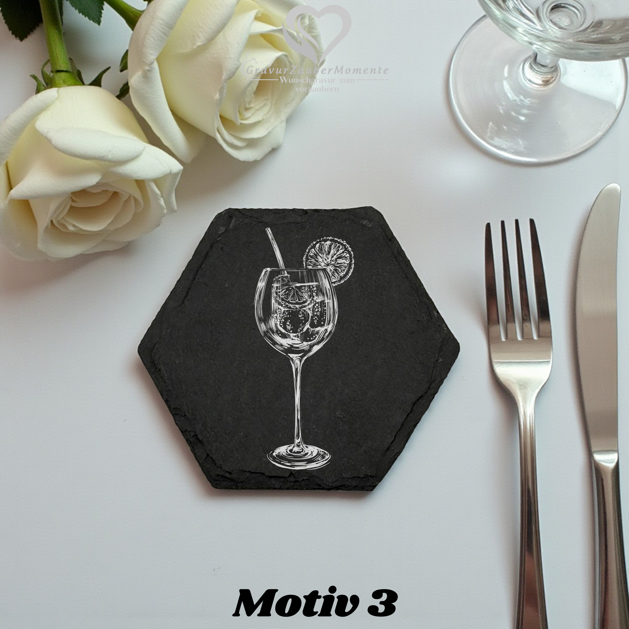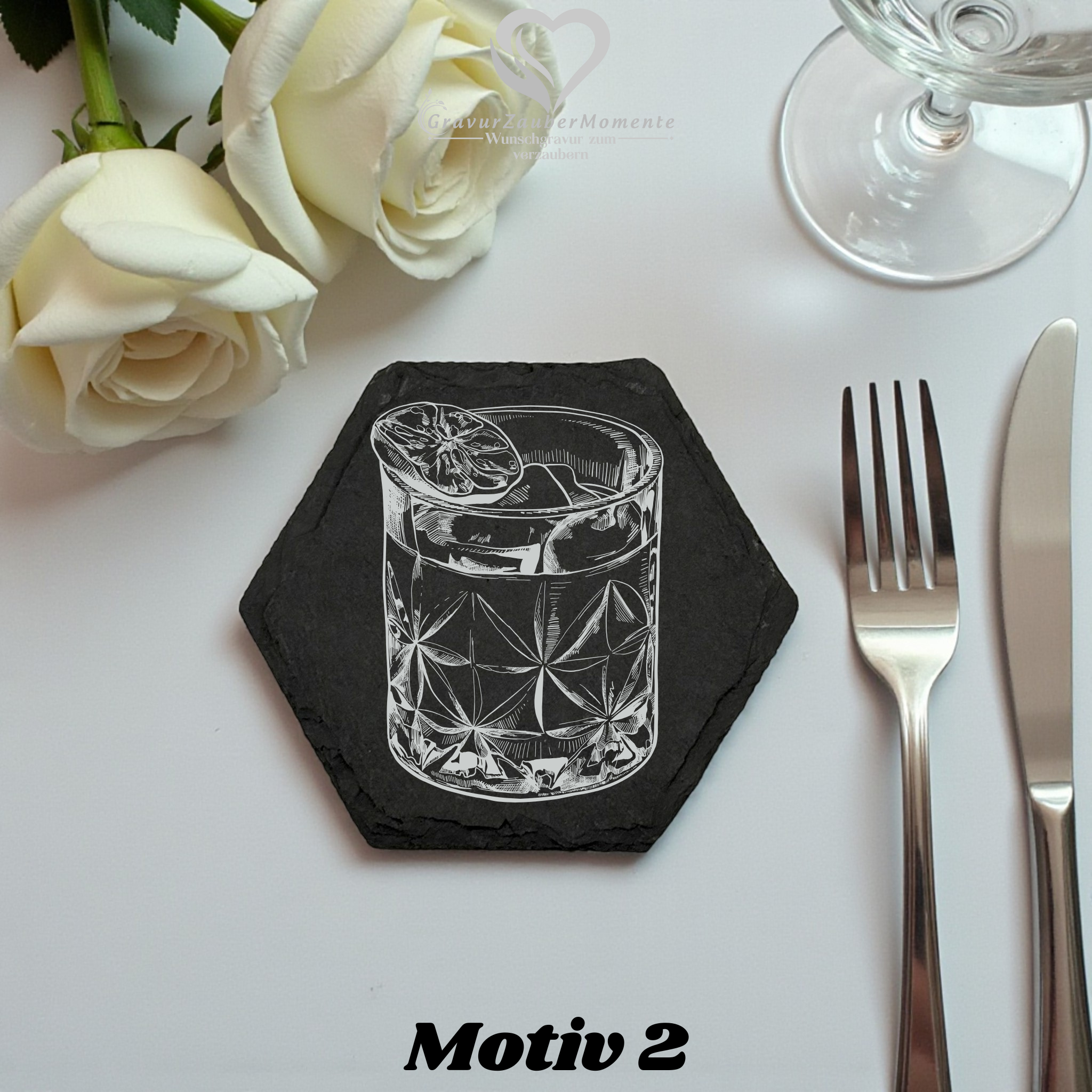 Unsere hochwertigen Schiefer-Untersetzer mit Lasergravur sind nicht nur praktisch, sondern echte Hingucker – perfekt für Zuhause, Bars, Restaurants oder besondere Anlässe.
