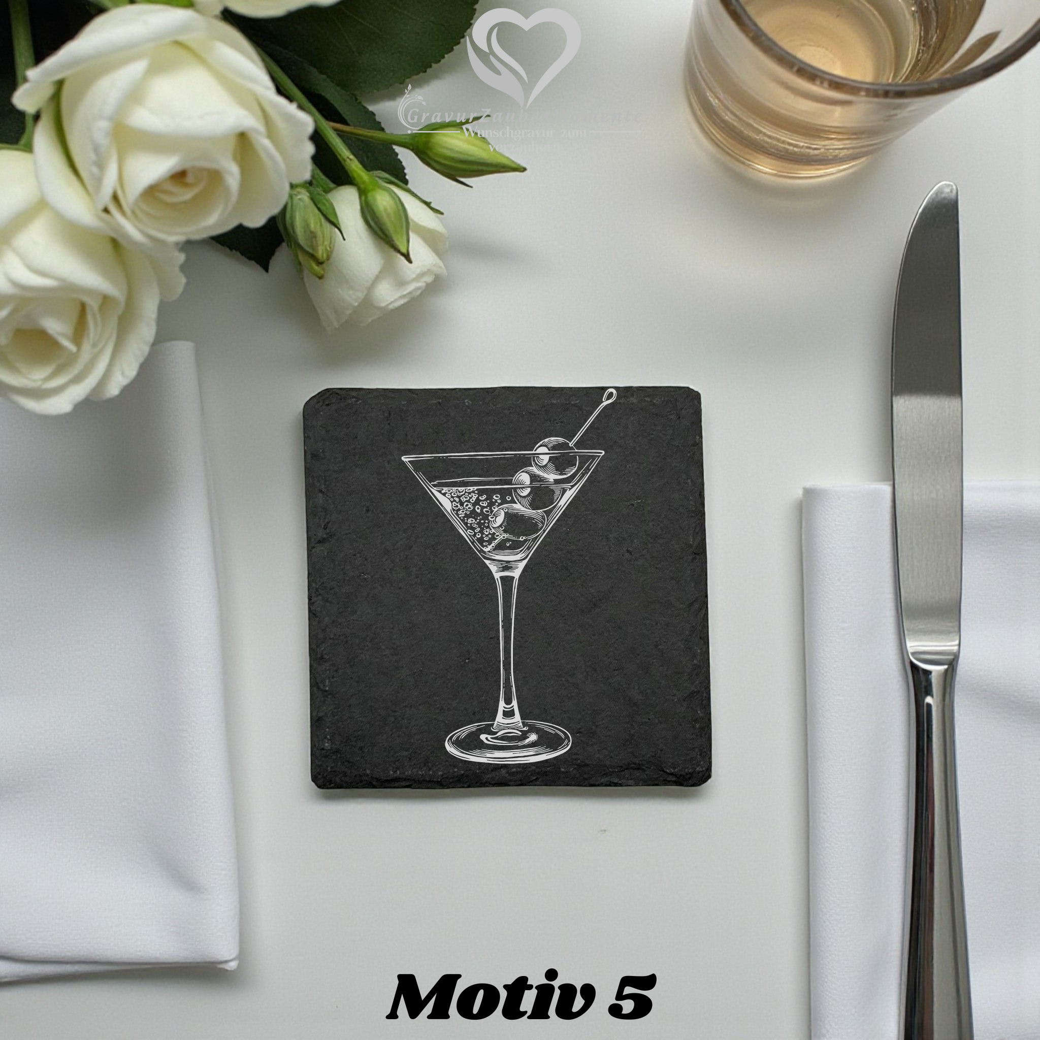 Unsere hochwertigen Schiefer-Untersetzer mit Lasergravur sind nicht nur praktisch, sondern echte Hingucker – perfekt für Zuhause, Bars, Restaurants oder besondere Anlässe.