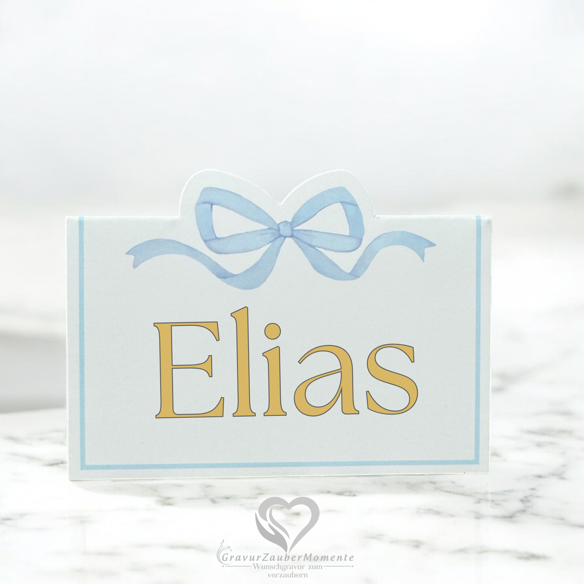 Tischkarte „Namenszauber“ Blau – Individuell graviert für jeden Gast